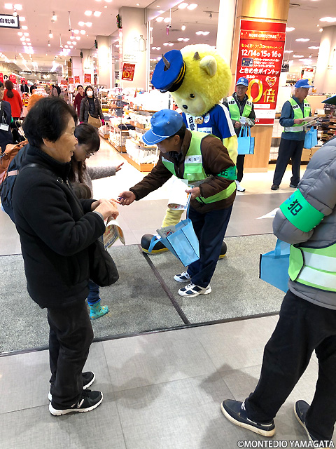そんな中、ディーオも天童市防犯協会ボランティアの皆様、天童警察署の皆様と一緒に年末警戒、うそ電話詐欺被害防止を訴えます。