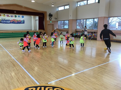 東北電力presentsふれあいフィールドとは地域貢献活動の一環として、幼稚園、保育園を対象にアカデミーコーチを派遣し実施しているサッカー教室です