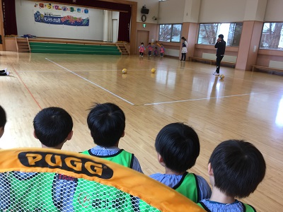 そして、年長さんは毎年恒例の「ちょうせんじょう」コーチたちとの対決です