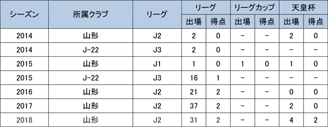 原FC→横浜F・マリノスプライマリー→横浜F・マリノスJrユース→横浜F・マリノスユース→モンテディオ山形