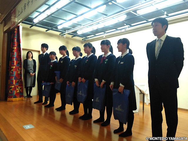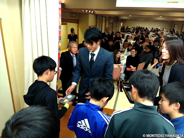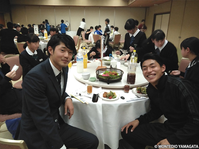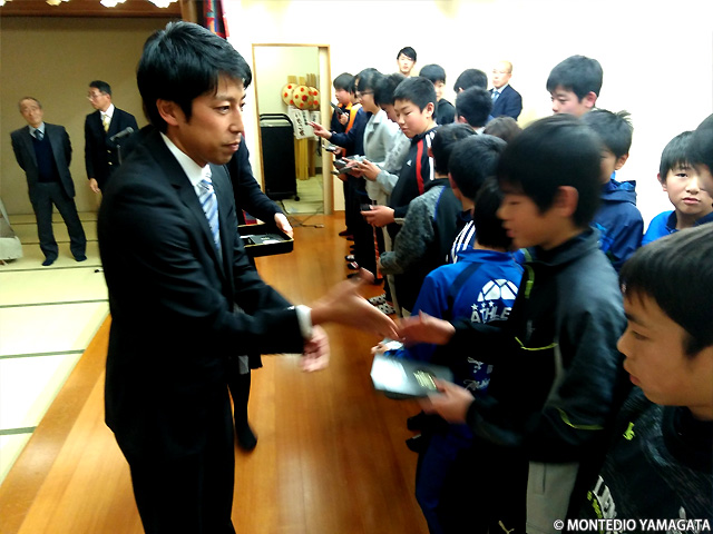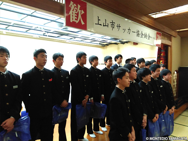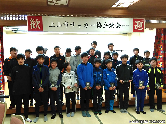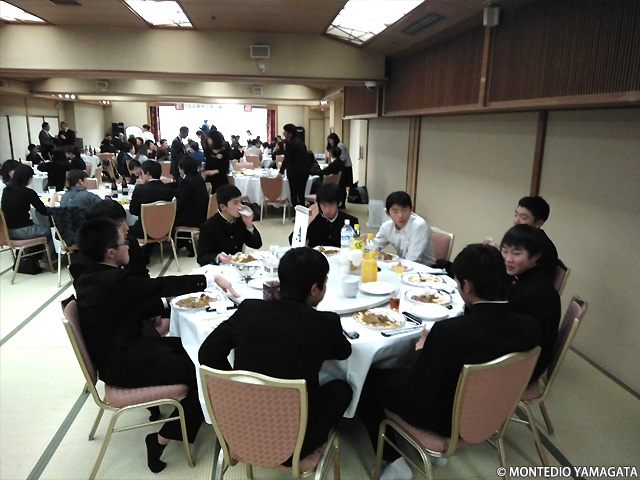 去る2018年12月16日、山形県上山市のかみのやま温泉「日本の宿 古窯」で行われた、上山市サッカー協会の納会にモンテディオ山形から現在JAPANサッカーカレッジに期限付き移籍中の髙橋成樹選手、アカデミーから秋葉勝ジュニアユース村山コーチとユースの半田陸選手が招かれました。