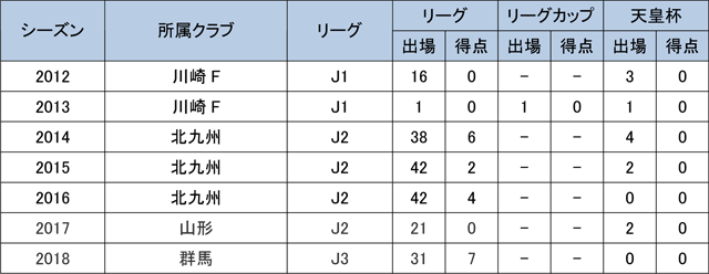 江尻サッカースポーツ少年団-清水FC-清水商高-ロウレターノDC/ポルトガル-TuSコブレンツ/ドイツ-川崎フロンターレ-ギラヴァンツ北九州-モンテディオ山形-ザスパクサツ群馬