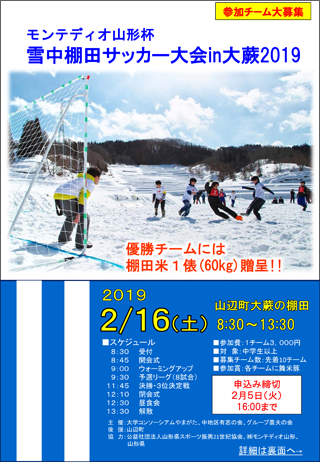 2019年2月16日(土)山形県山辺町大蕨地区の棚田にて、モンテディオ山形杯「雪中棚田サッカー大会in大蕨2019」が下記の通り開催されますのでお知らせします。