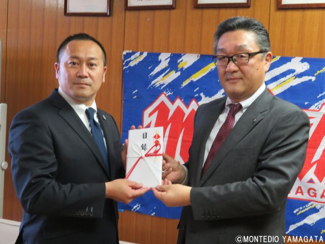 「モンテディオ山形サポーターズ定期預金2018」からのチーム強化費を頂戴いたしました