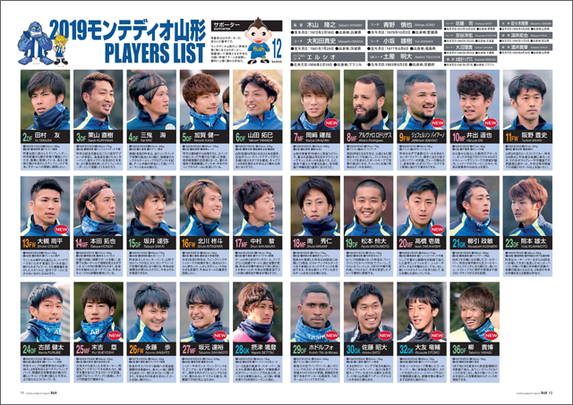 新加入選手インタビューでは、今年新加入した、ジェフェルソン・バイアーノ、ホドルフォ、井出遥也、坂元達裕、柳貴博、大友竜輔の6選手に、キャンプ中の様子や新シーズンに向かう決意を伺いました。また、鹿児島での2次キャンプの様子をもとに、今年のモンテディオ山形のスタイルを詳しく分析していきます。もちろん、開幕戦のFC岐阜戦のマッチレポートも詳しく掲載します。