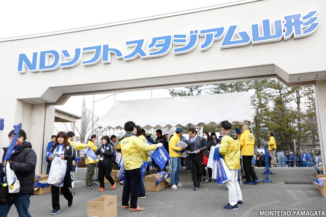 J2リーグも第4節を向かえて、いよいよホーム開幕戦となりました。この日を待ちわびた一万人を超える皆様にNDソフトスタジアム山形に来場頂きました。