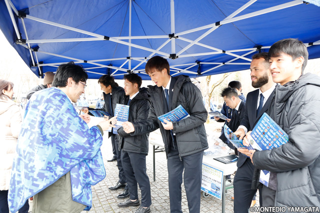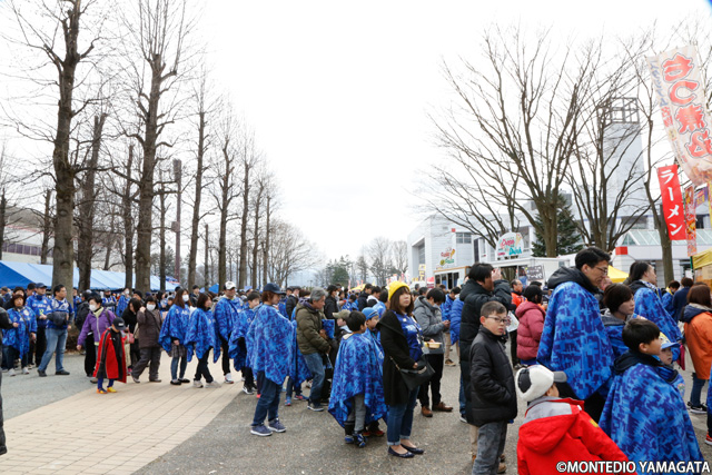 この試合では、マッチスポンサーを務めて頂いたアビームコンサルティング株式会社様の協力も得て、来場者の方々、先着10,000名様にフリースポンチョをプレゼント。スタンドをモンテディオブルーに染め上げるだけでなく、春とは言えまだ寒さを感じるスタジアム観戦にまさにジャストフィット。来場された皆さんにお喜び頂けました。