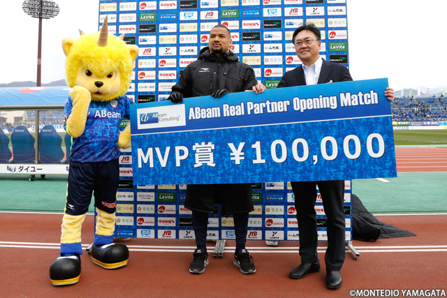 MVPに選ばれたのは、もちろん自ら得たPKを決め決勝ゴールを上げたジェフェルソン バイアーノ選手でした。マッチデースポンサーのアビームコンサルティング株式会社様から賞金10万円が贈られました。