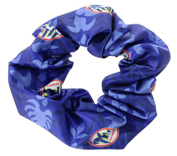 上品な光沢感のあるサテン生地使いで品のよさもプラス!「モンテディオ山形」のチームカラーでもあるブルーベースに、旬なボタニカル柄を添えたおしゃれなシュシュが登場。