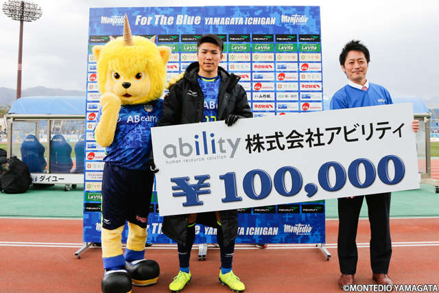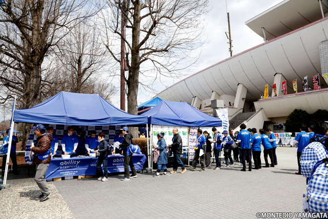 この試合は株式会社アビリティ様による「アビリティプレゼンツマッチ」として開催され、特設ブースではアビリティ×モンテディオ山形コラボ ポスターやアビリティ特製ボールペン・クリアファイルがプレゼントされました。