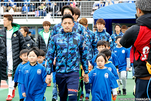 山田拓巳キャプテンを先頭にピッチに入場する選手たち。
