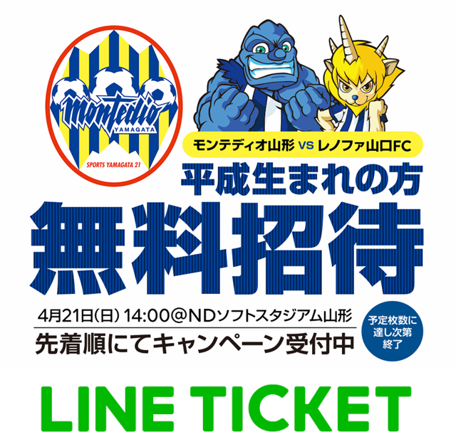 この試合はモンテディオ山形 平成最後のホームゲームになります。この試合を対象に平成に生まれの方をバックスタンド自由席にご招待いたします。