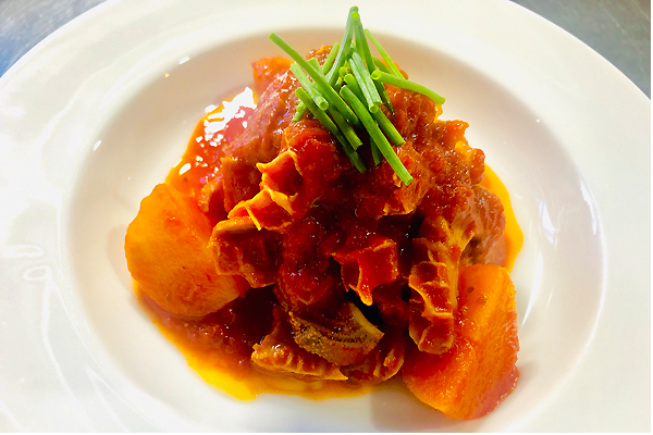 牛もつであるトリッパ(ハチノス)を丁寧に下処理をし、クールブイヨンで4時間、コトコト煮込みトマトソースでからめた、イタリアのマンマの味、自慢の煮込み料理です!是非ご堪能ください!