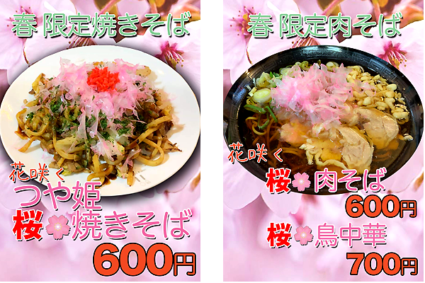 ◎つや姫桜焼きそば…600円、桜肉そば…600円、桜鳥中華…700円