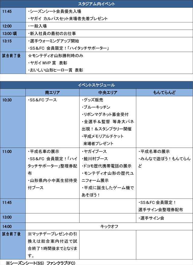 モンテディオ山形にとって平成最後のホームゲームとなります。平成30年間の様々なカルチャーやモンテディオ山形の歴史を展示し、振り返る「ありがとう平成」イベントを開催します。