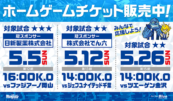 5月開催ホームゲームチケット販売開始のお知らせ