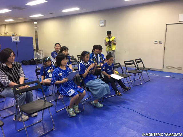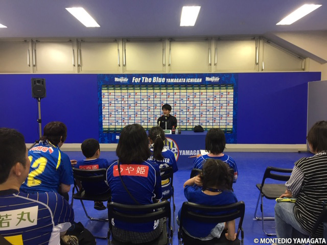 2019年5月5日(日)にNDソフトスタジアム山形にて開催された2019明治安田生命J2リーグ第12節vs.ファジアーノ岡山でのスタジアムお仕事体験・記者体験の模様をご紹介します。子どもたちからの質問に答えたのは坂元達裕選手です。