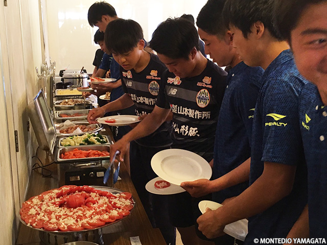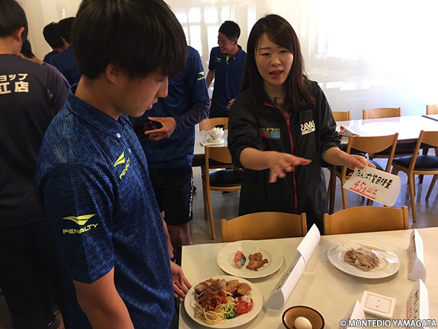 公開日 2019.05.15 ユース 実践型栄養講習会 実施報告 2019年5月12日にビジネスホテル中央にご協力のもと、弊クラブユース選手を対象に株式会社明治 管理栄養士の高橋亜未氏による栄養講習会を実施いたしました。 今回は、毎年行っている座学のみでなく実際にバイキング形式の食事をとりながら、「どのような食品を」、「どのくらい」摂取することが必要かを実際に食事をとりながら行う方式で行いました。 その模様を写真で紹介させていただきます。 #アカデミー ニュース一覧