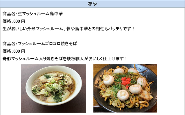 舟形マッシュルームを使用した限定メニューの販売