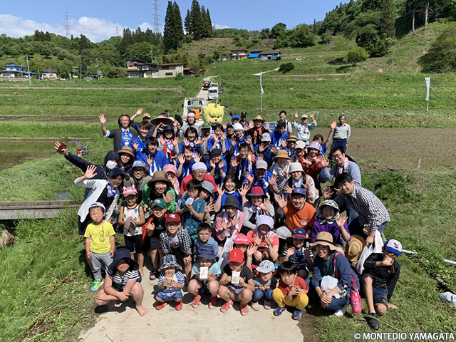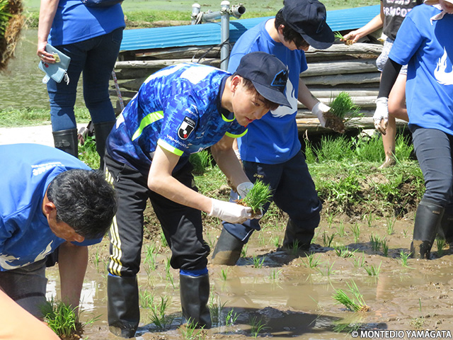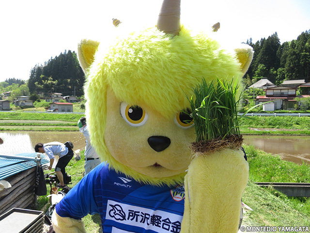 この日快晴の中、弊クラブマスコットのディーオとクラブスタッフが参加し、「モンテ棚田米」の田植えを行いました。