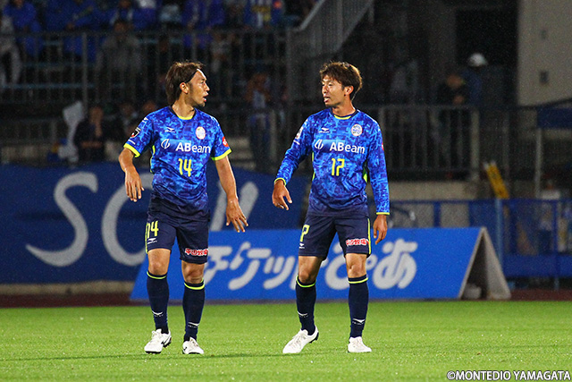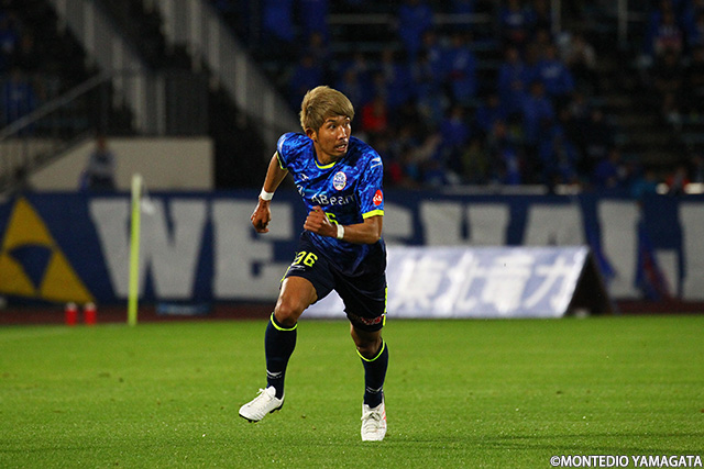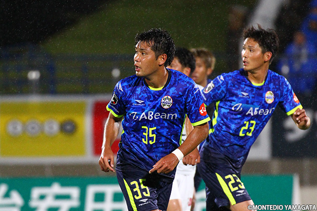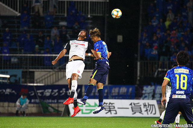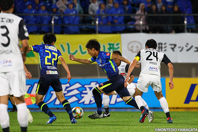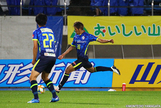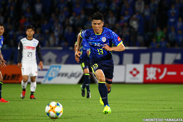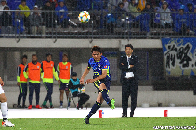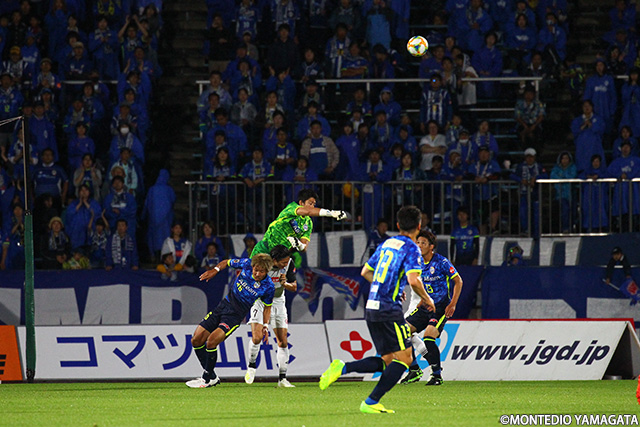 前節アウェイ甲府戦でスタメンとして起用されモンテディオ山形デビューとなった野田裕喜選手はこの試合も引き続きスタメン起用され今度はホームデビュー。しかしそれを感じさせない安定したプレーを見せます。
