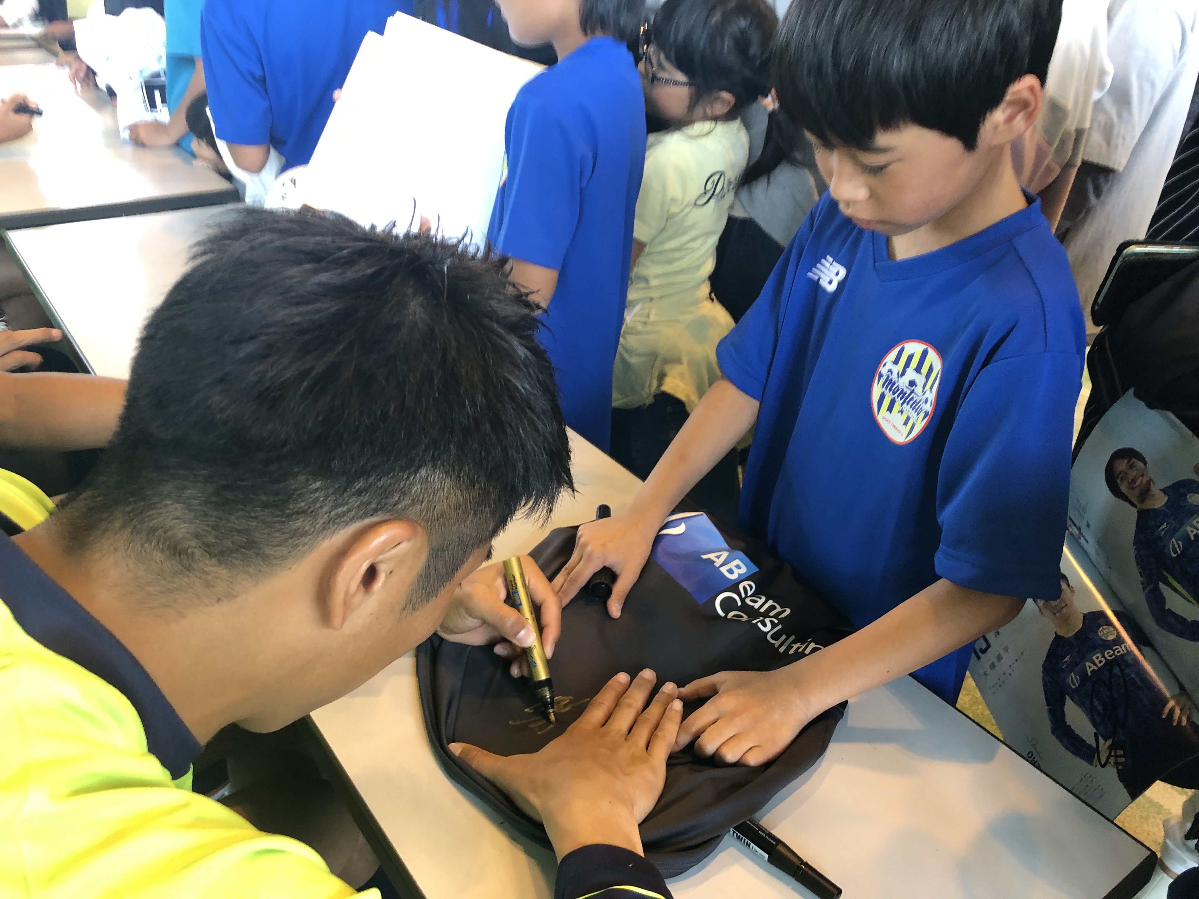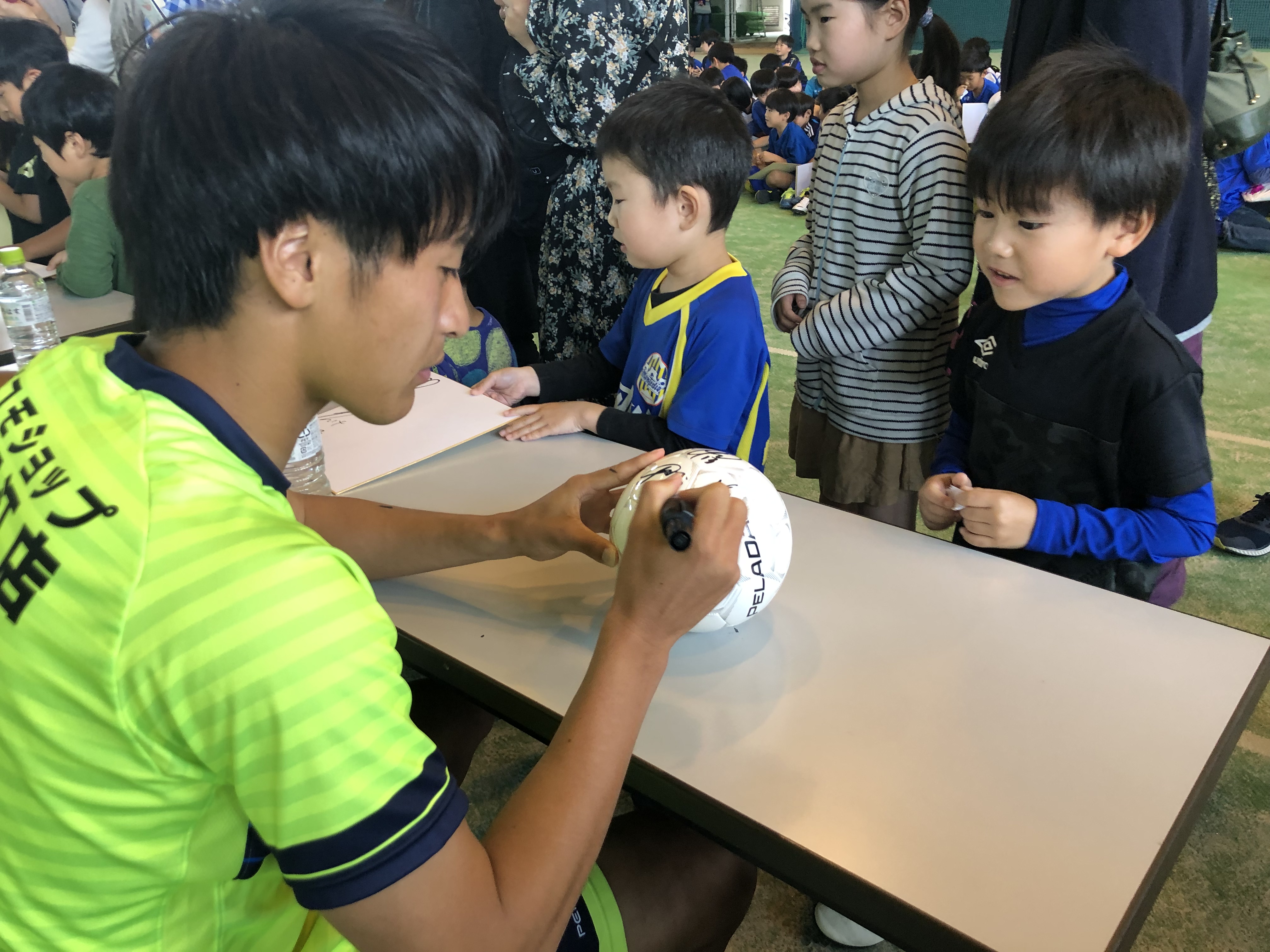 悪天候のため選手との試合ができませんでしたが13名の選手からサインをもらえ、みんな笑顔に