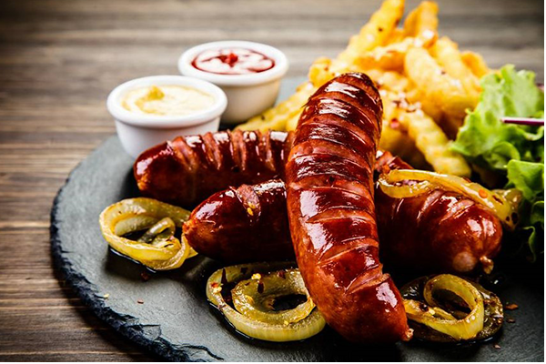 香ばしく焼いたソーセージにケチャップとカレー粉をまぶした、ドイツ屋台NO.1ソーセージ料理