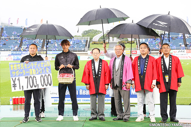 河北町からは森谷俊雄町長に試合にご来場頂きイタリア野菜、べに花の花束、リボンマグネット募金を頂きました。常日頃より皆様には多大なご支援を頂いておりますが、改めて御礼申し上げます。