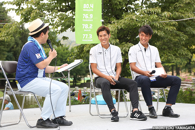 夏祭りだモン!イベント「ナツノマジック」選手トークショーには野田裕喜選手と髙木彰人選手が登場。MCのワッキー貝山さんが楽しいトークを引き出します。次のホームゲーム横浜FC戦ではポセイドン石川さんをはじめなんと7組のゲストが登場予定です。ぜひこちらもお楽しみに。