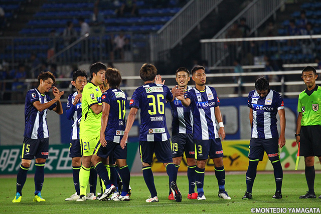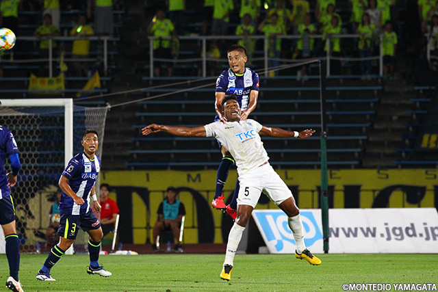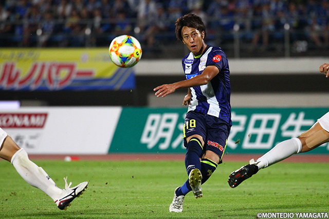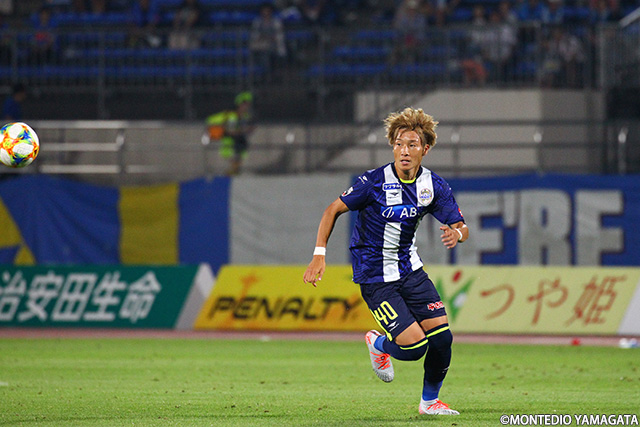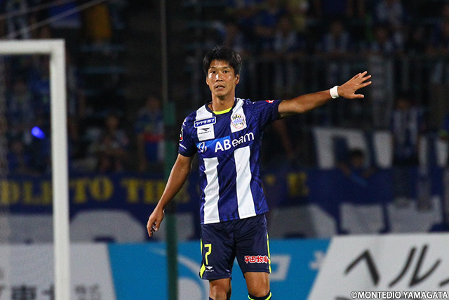 8月6日に完全移籍加入が発表となった山岸祐也選手は後半途中からピッチに立ち、モンテディオ山形の選手として初出場を果たします。