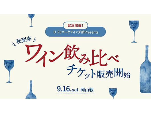 【U-23マーケティング部Presents】緊急開催!!「秋到来」9.16岡山戦 ワイン飲み比べチケット販売のお知らせ