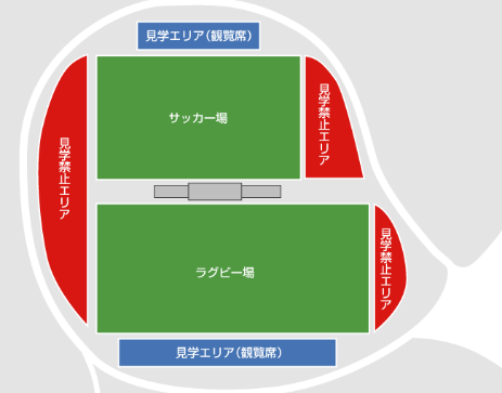- サッカー場及びラグビー場での見学は、見学エリア(観戦席)にてお願い致します。