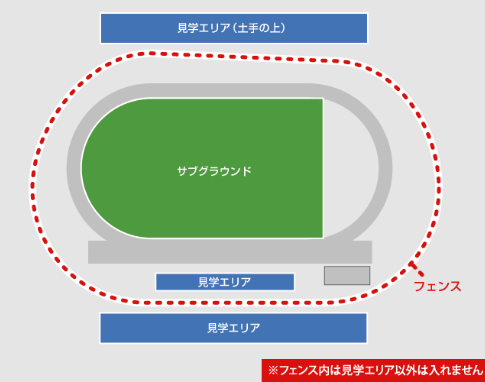 - 陸上競技場での見学はメインスタンド観戦席にてお願い致します。