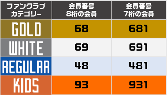 例:ファンクラブ・ゴールドで会員番号が「5123456」の会員 ⇒「4815123456」